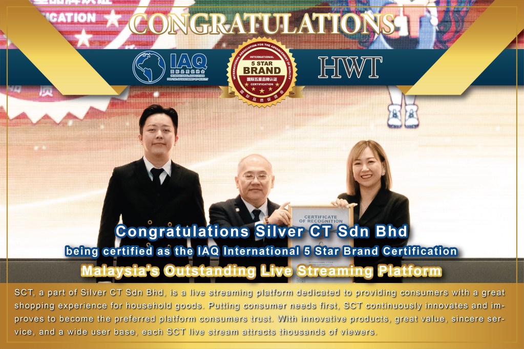 恭喜 SCT 荣获 IAQ国际五星品牌认证 大马万人顶流直播平台